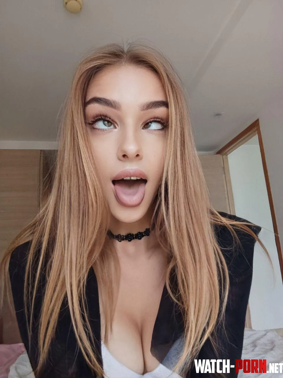SweetCrystal1 provokes with swallowing in RealAhegao