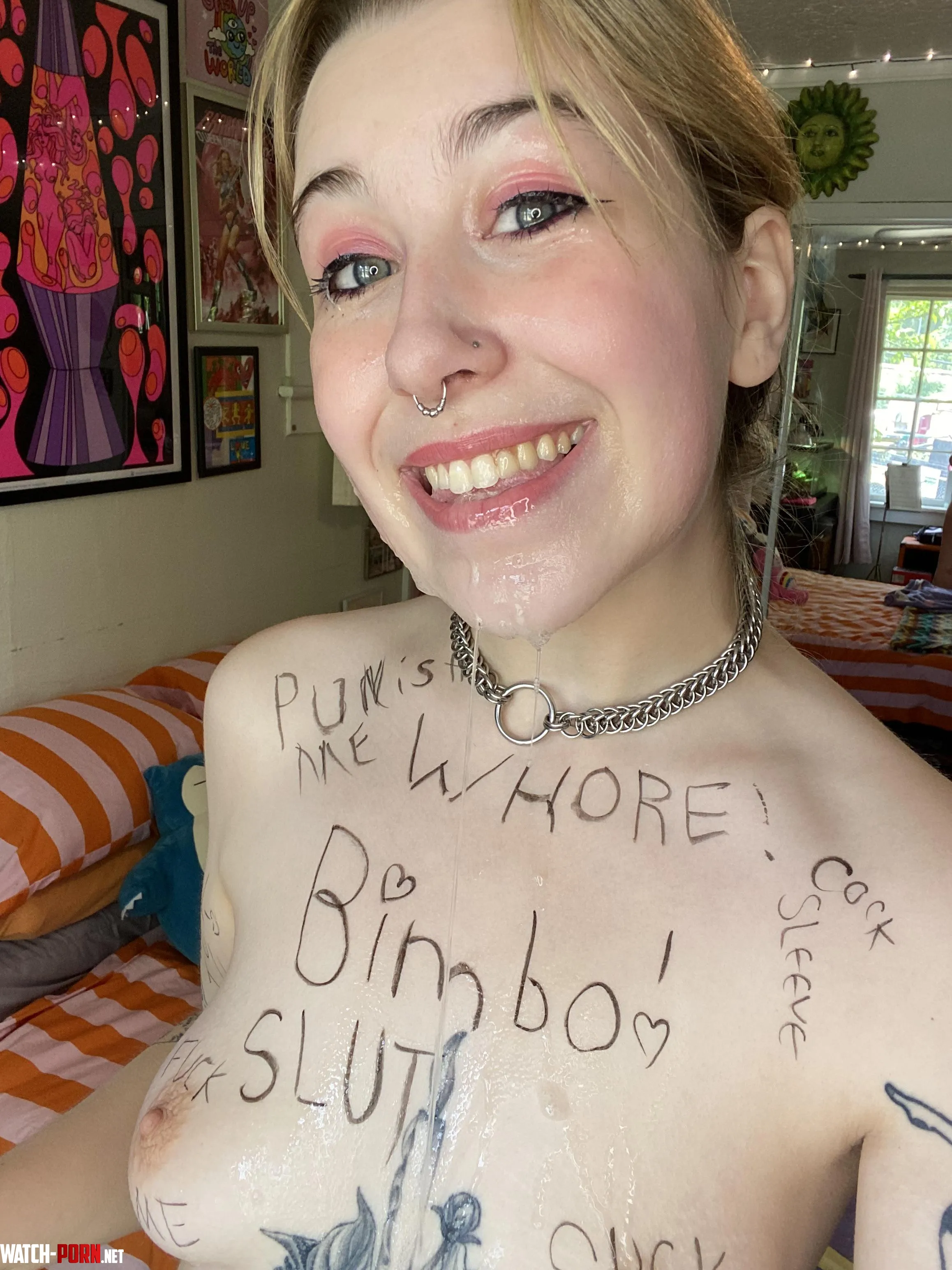 Here Are My Tits Full of Spit, When Are You Going to Suck Them by Delfi_curvy | Spit Fetish