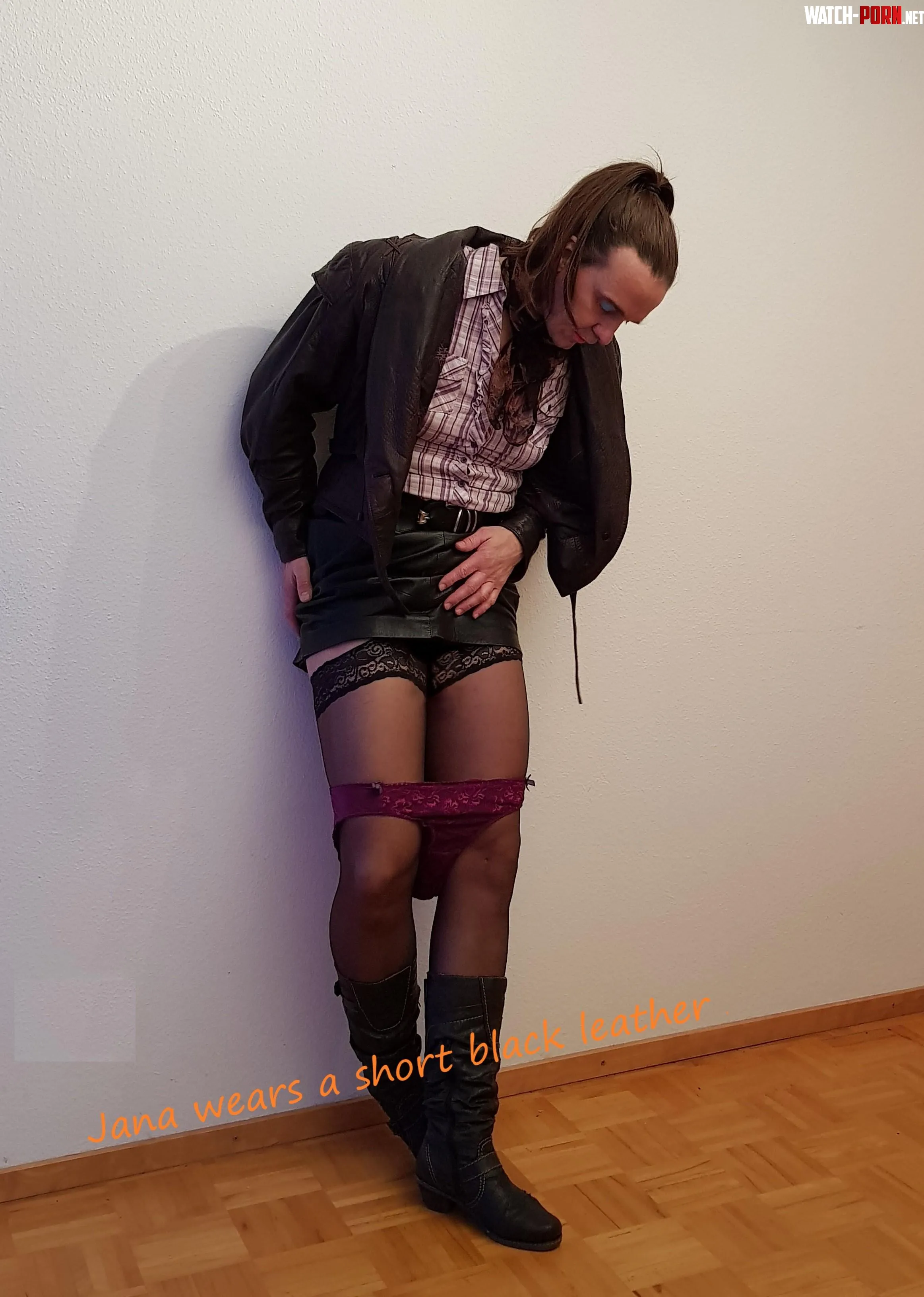 Sweet Jana Lifts Up Her Leather Mini Skirt by sweetjanasweet in Miniskirt Category